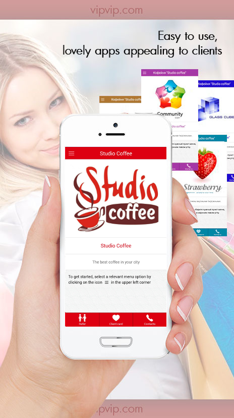 VIPVIP एक एप्लिकेशन है जो आपको एक आसान फॉर्म भरने और अपनी कंपनी या आउटलेट के लिए एक मुफ़्त ऐप बनाने का मौक़ा देता है। ऐप में आपके ग्राहकों के लिए आवश्यक सभी जानकारी शामिल होगी और यह ऐप स्टोर और Google Play पर डाउनलोड करने के लिए तुरंत उपलब्ध होगी। यह एक अनूठा उत्पाद है जो न केवल आपको अपना पैसा बचाने की मौका देता है बल्कि एक फंक्शनल ऐप से होने वाले फ़ायदे भी देता है।