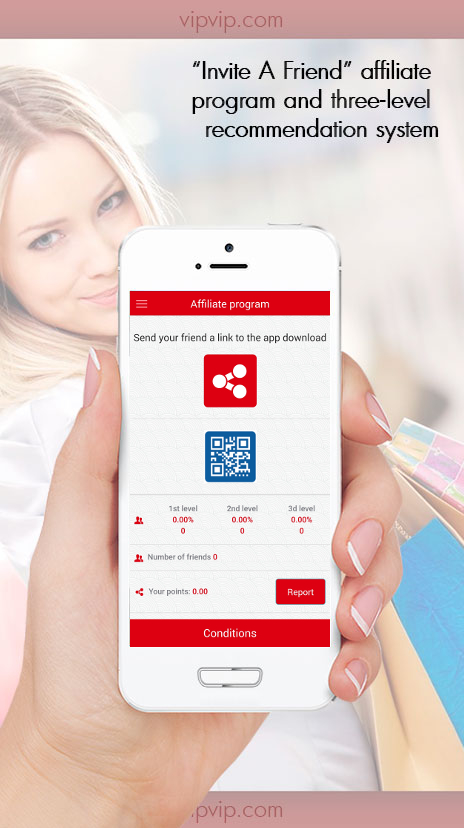 एप्लिकेशन में एक अफ्लिएटेड प्रोग्राम बनाने का विकल्प है जो आपको “इनवाइट ए फ्रेंड" रणनीति का उपयोग करके अधिक ग्राहकों को आकर्षित करने की अनुमति देता है।